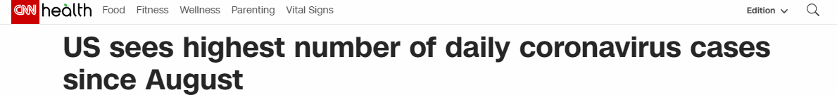 美国迎八月中旬以来单日新增新冠感染数最高峰 疫情或在冬季继续恶化
